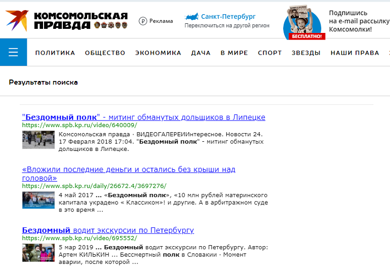 При этом интернет-поиск показал, что ни одно из изданий, получивших контракты в Ленобласти, не публиковало материалы о «Бездомном полке», хотя это могло бы снизить градус негатива.