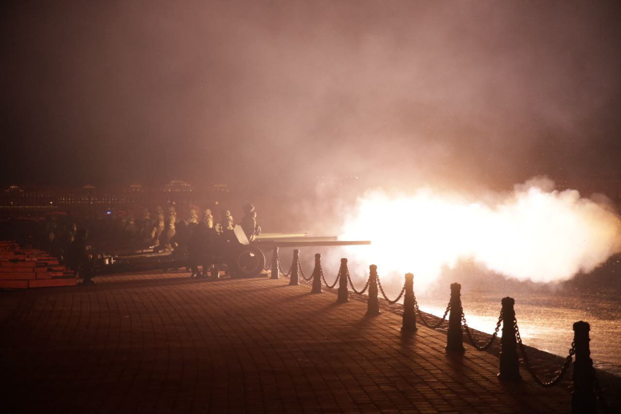 Двенадцать артиллерийских орудий Д-44 сопровождали пуск 30 холостыми залпами, каждый из которых посвящен памяти погибших защитников Родины.