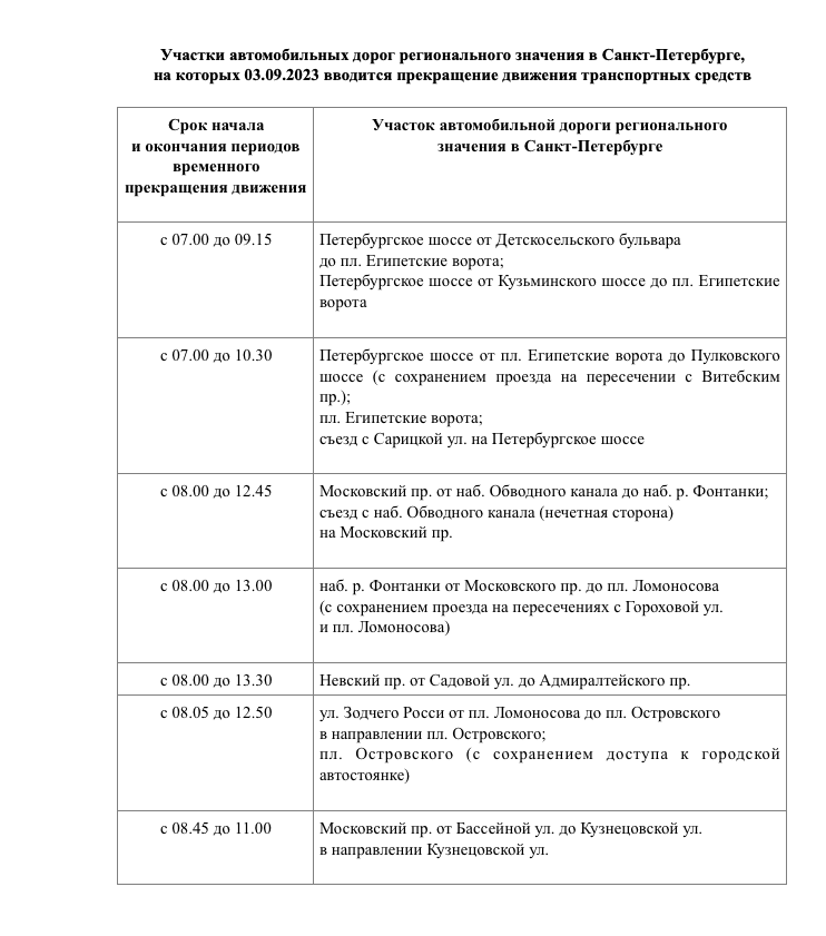- с 07:00 до 13:00 — на Московском пр. от пл. Победы до наб. Обводного канала.